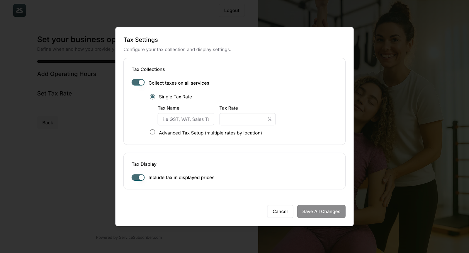 Select Single Tax Rate if you charge one tax rate for all services