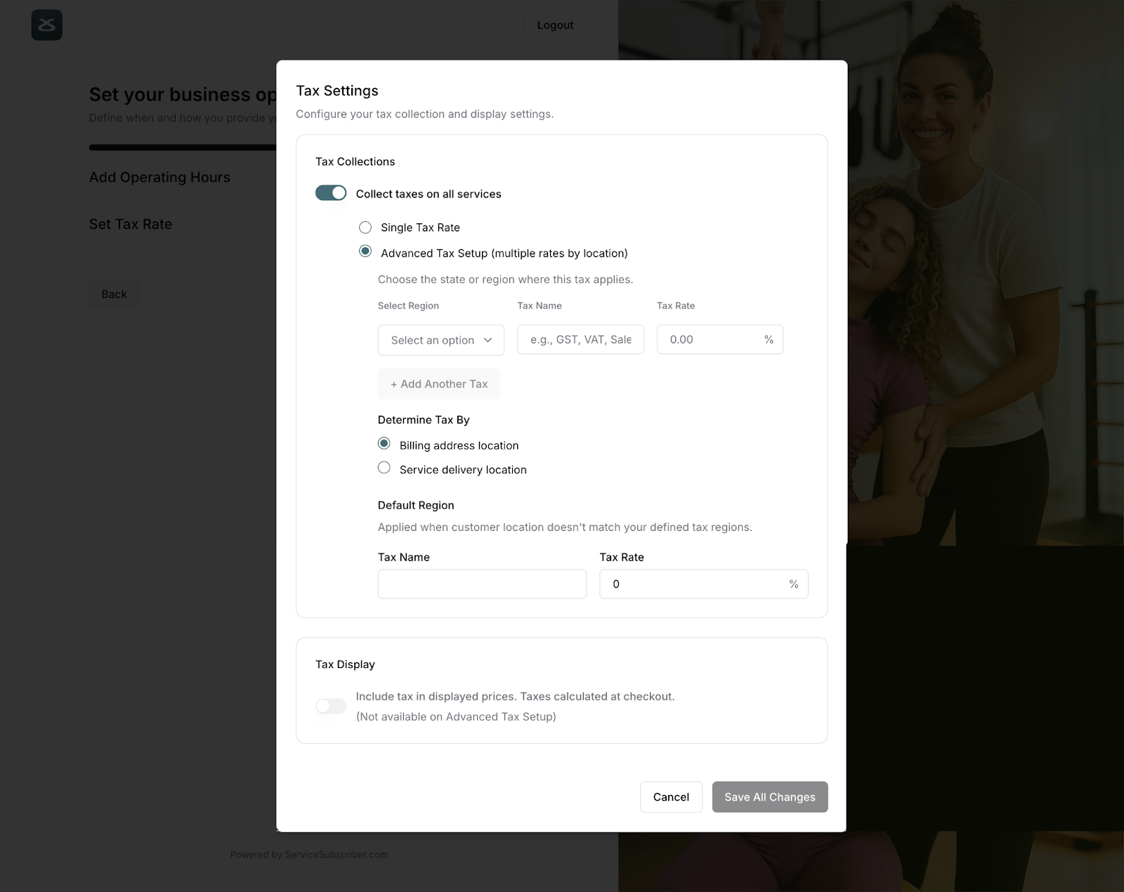 Set up how taxes apply to your services.