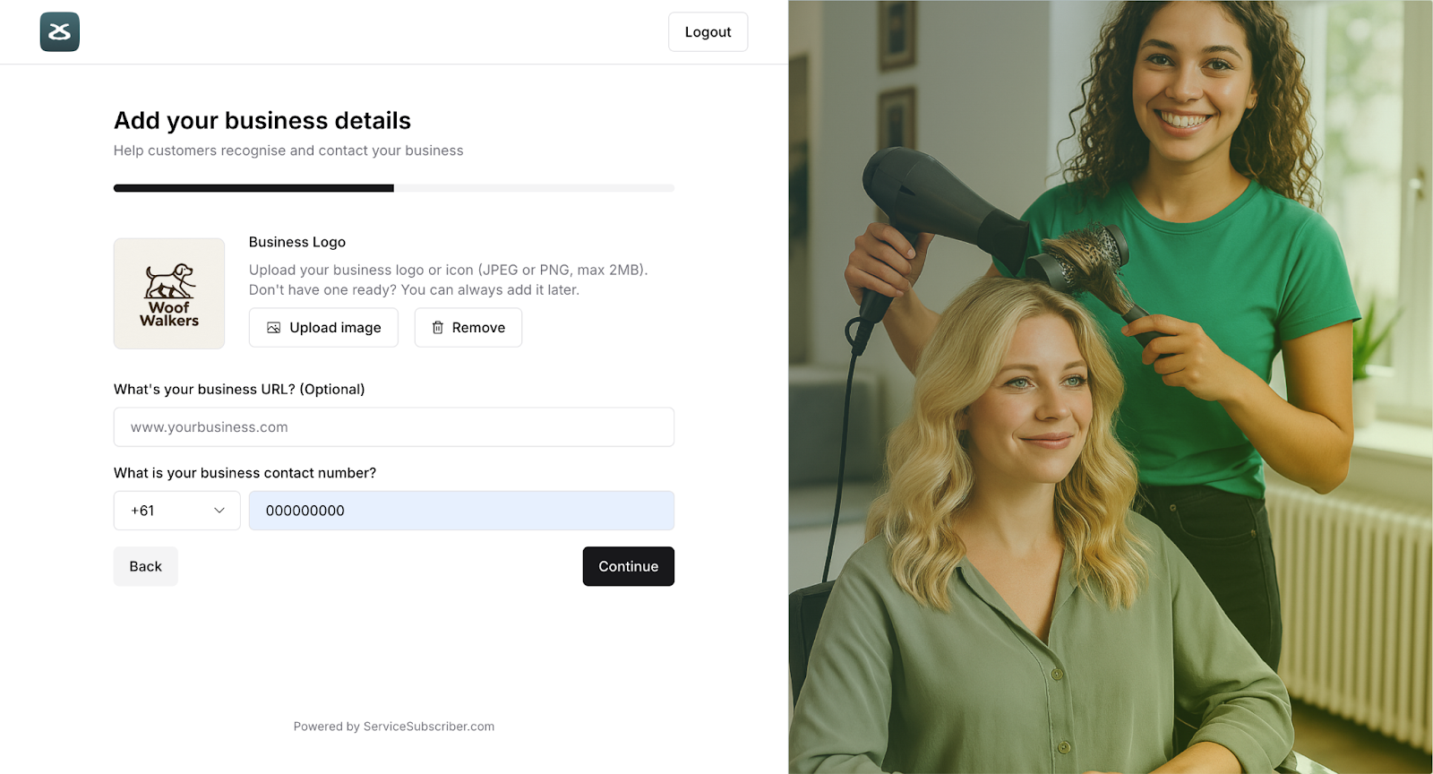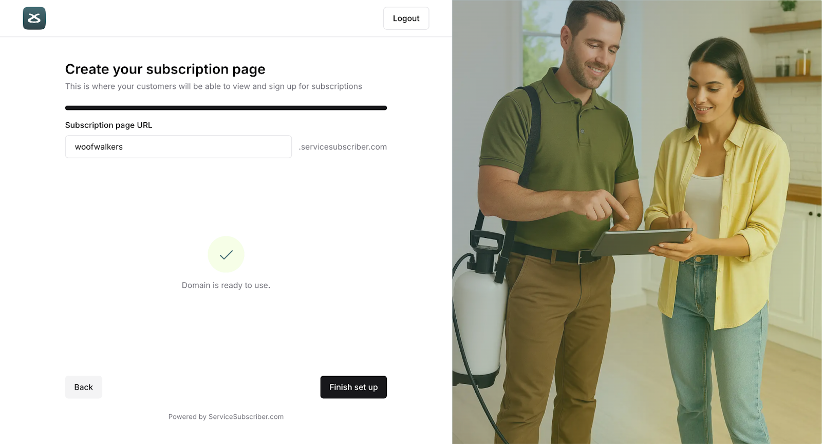 Your full URL will be: businessname.servicesubscriber.com