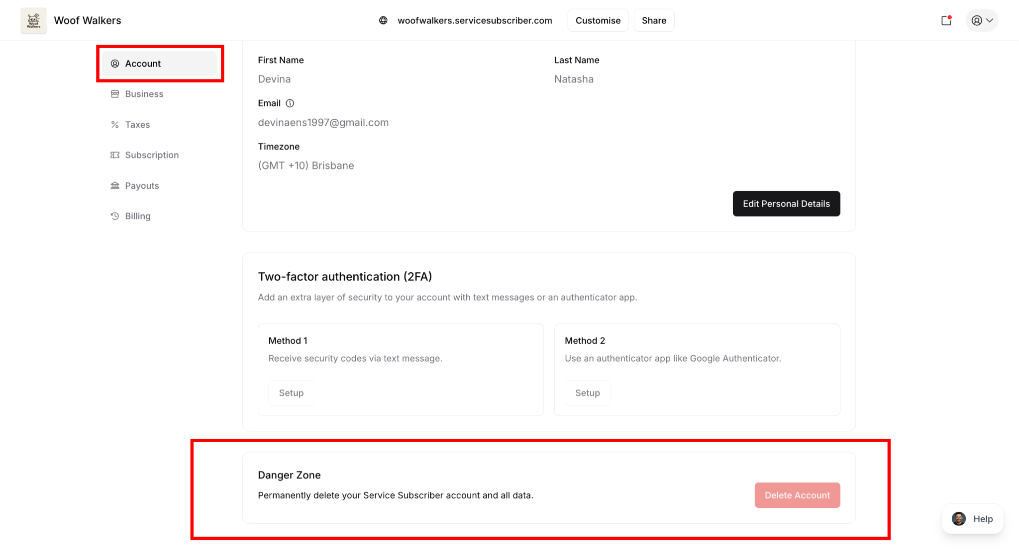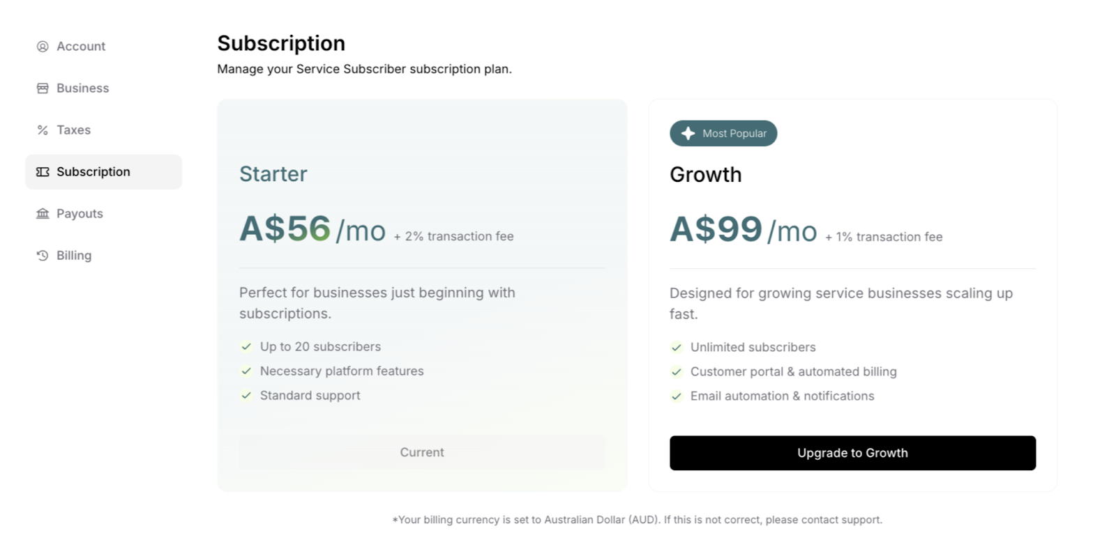 All subscription management happens in your Account Settings. This is your central location for managing your ServiceSubscriber plan, billing, and account preferences.
