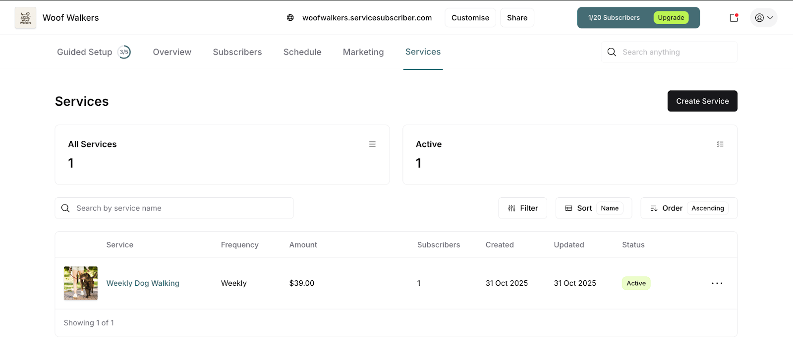 ServiceSubscriber guides you through setup