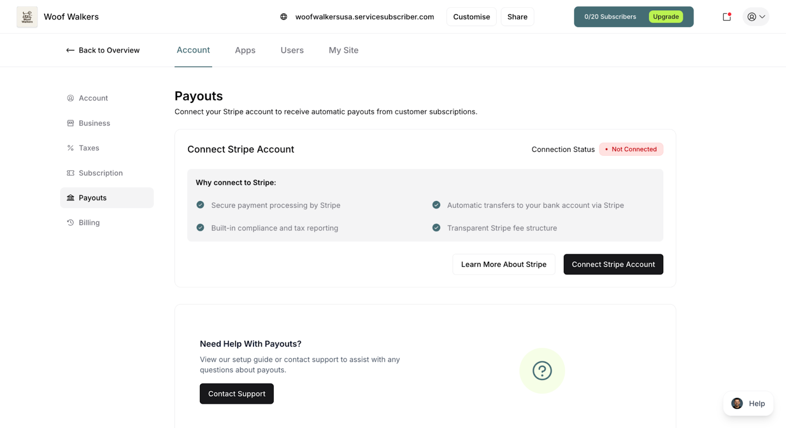 Click Connect Stripe Account