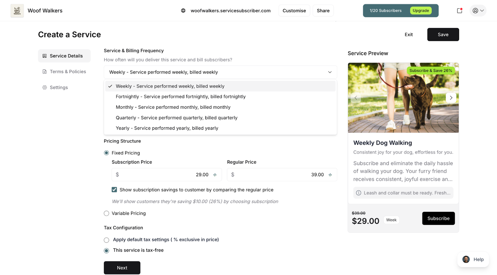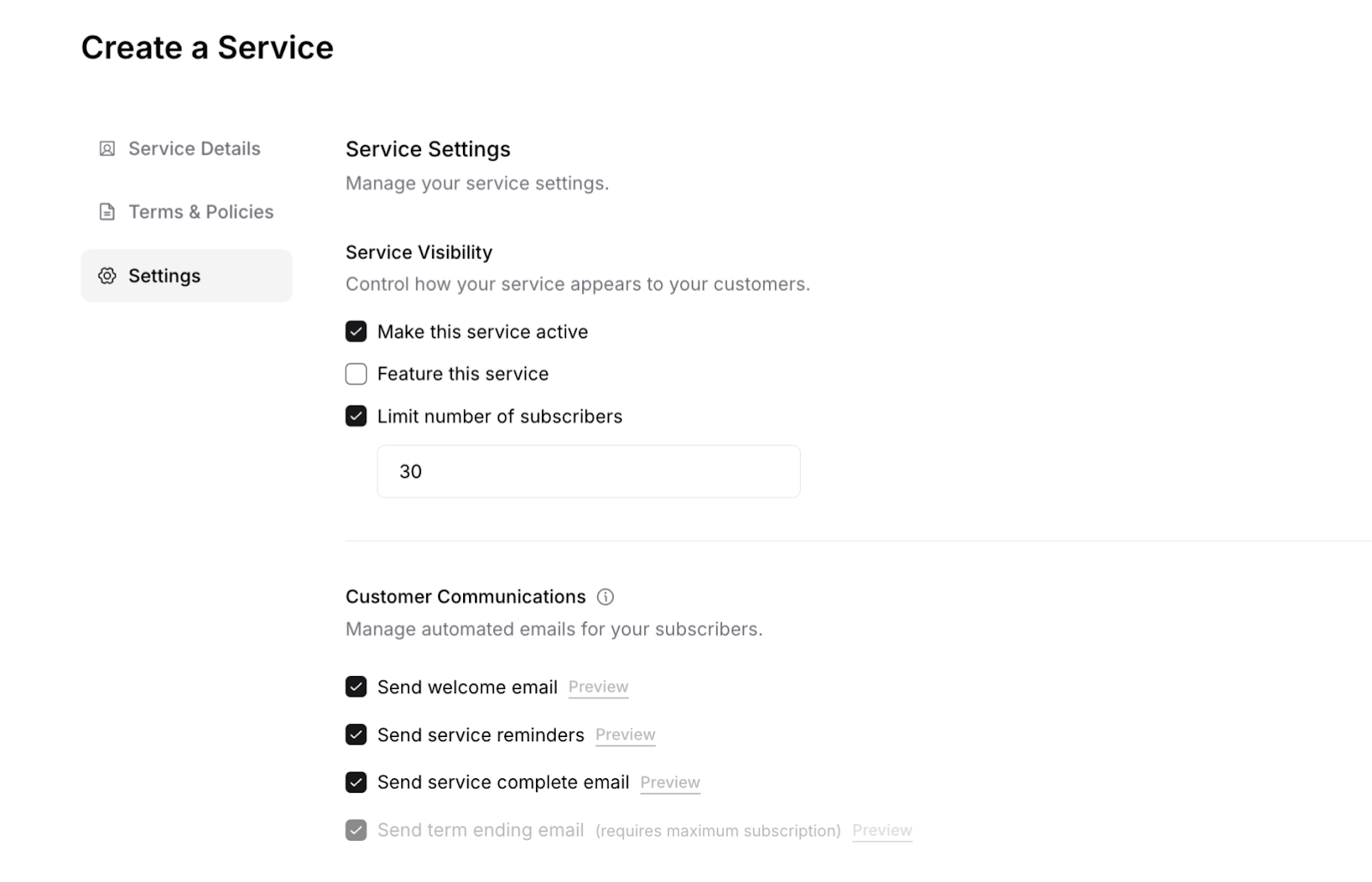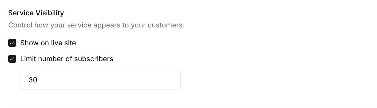 ✍️ TIP: Use subscriber limits to manage your recurring workload while still accepting one-off purchases. This gives you capacity control for committed customers while allowing flexibility for occasional service requests.