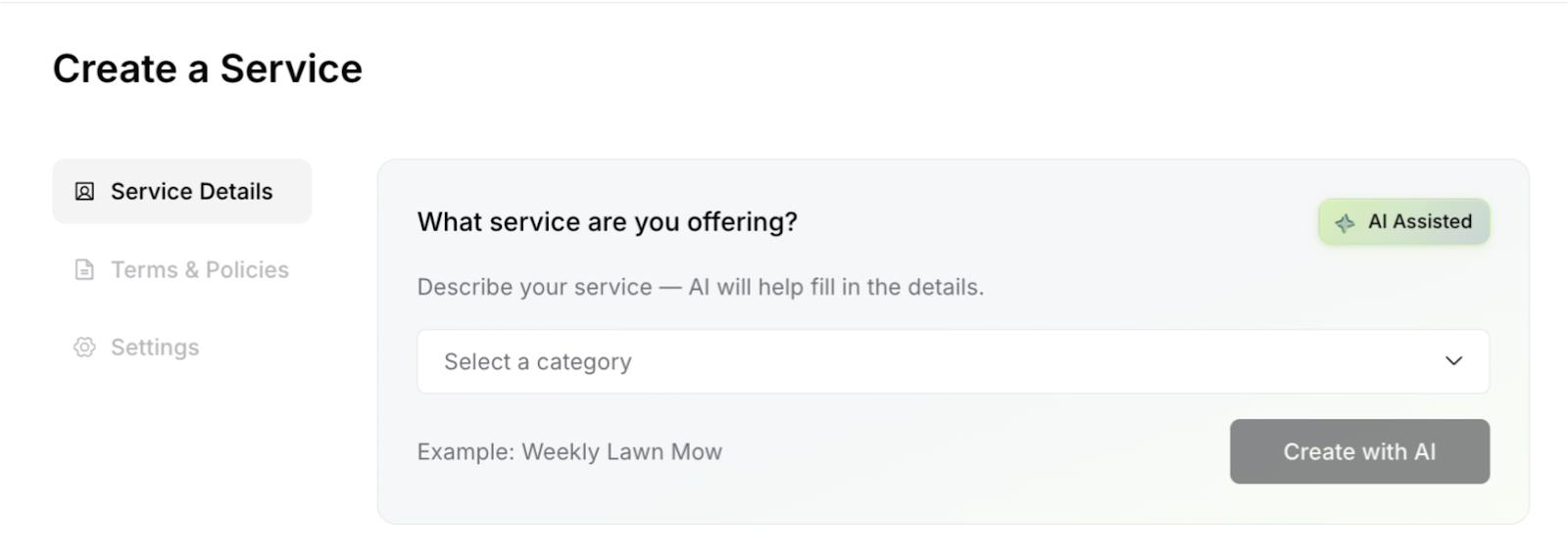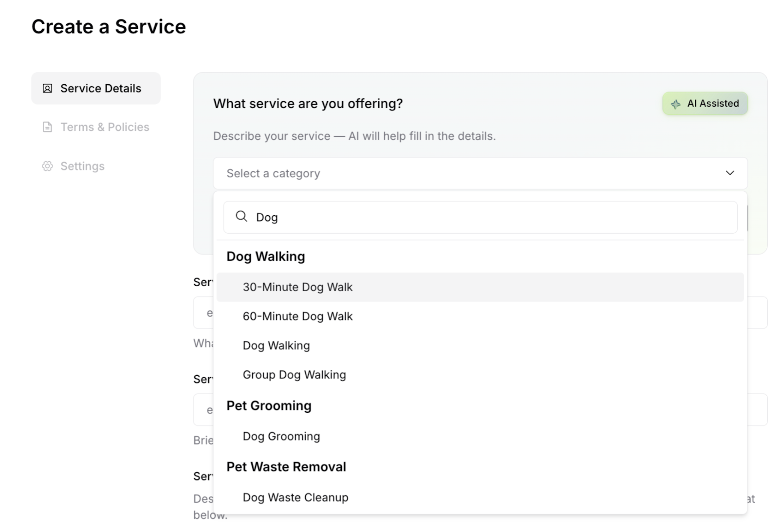 ✍️ TIP: Choose the closest category even if not perfect. You can edit the AI-generated content to match your specific service.