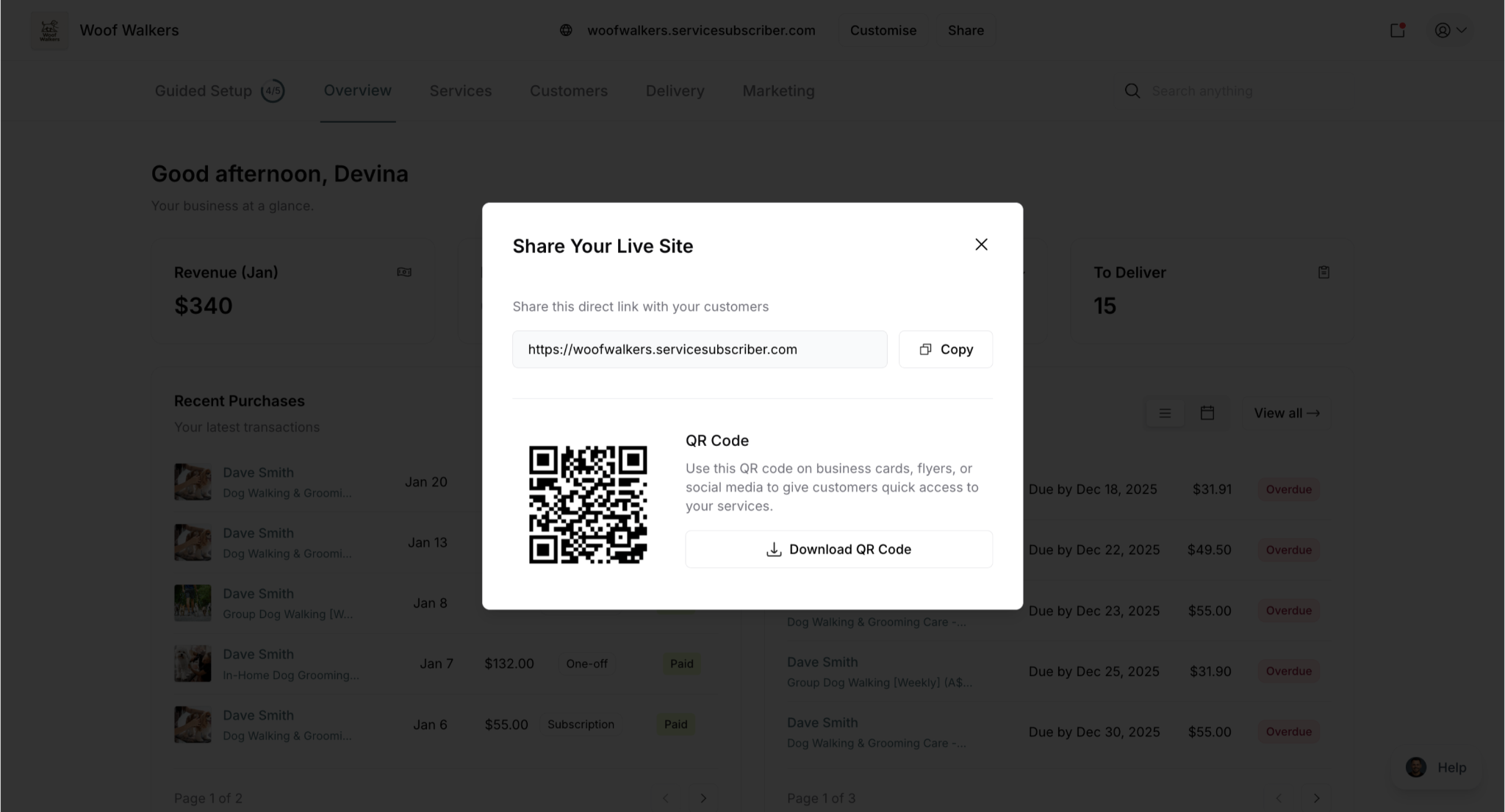 Your live site is your digital storefront—where potential customers discover your services and make purchases. Getting this link in front of people is essential for growing your customer base.