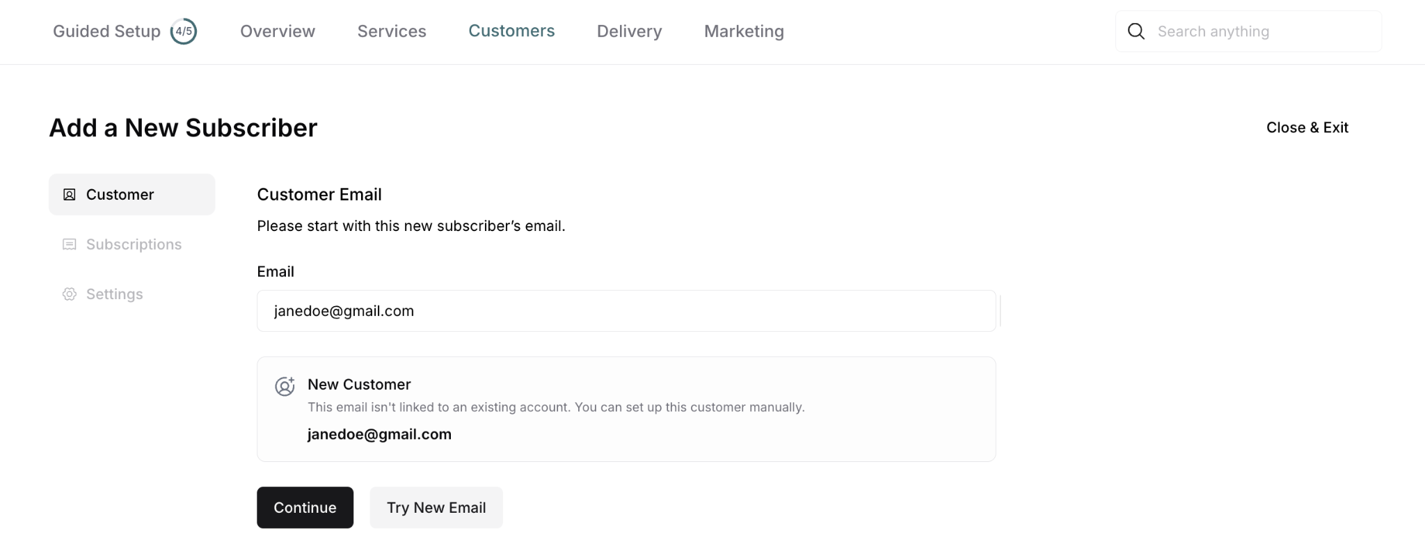 ✍️ TIP: The "Create Subscriber" button is specifically for sending subscription invitations. There is no equivalent feature for one-off purchases—those customers must discover and purchase through your live site.