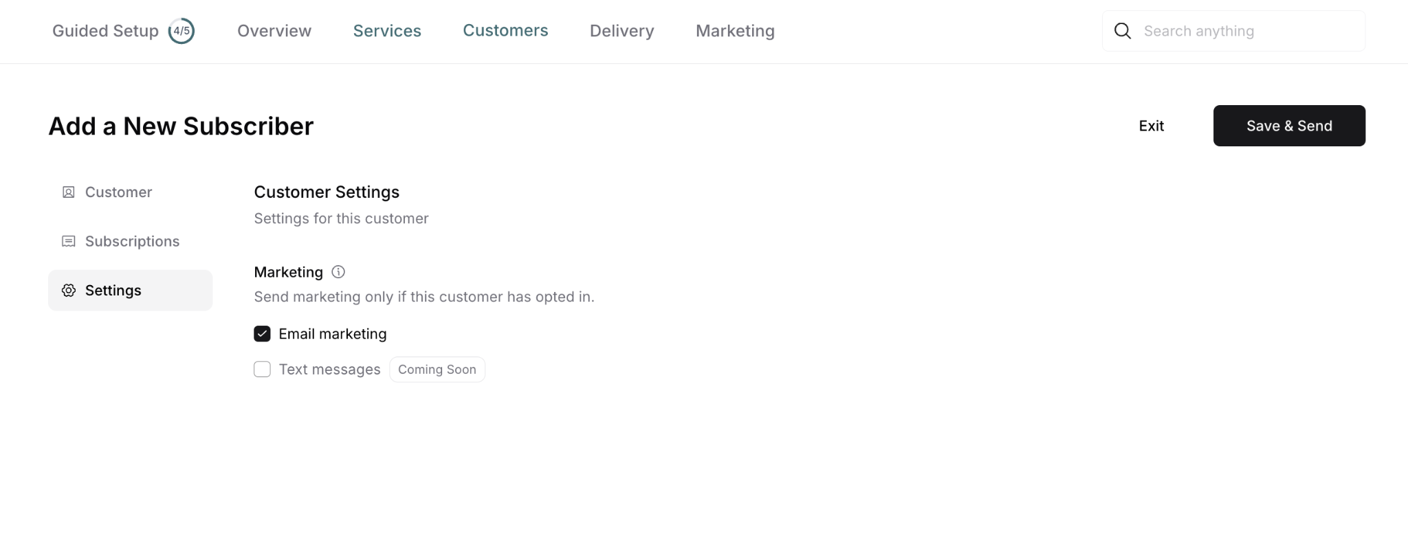 Email marketing: New customers are added to your marketing list by default. Uncheck to exclude from promotional emails.