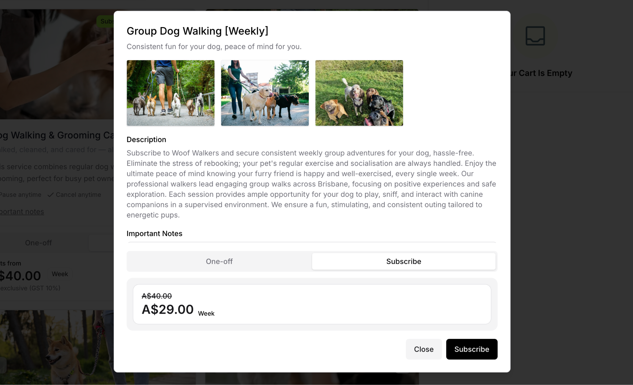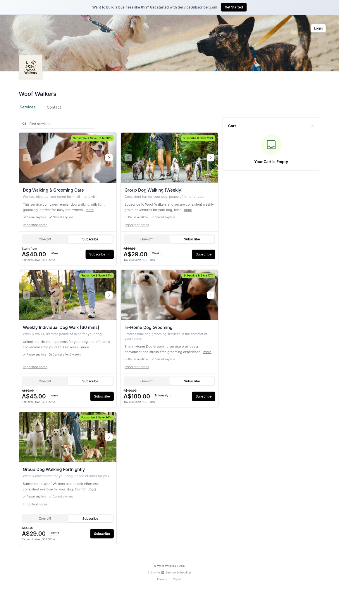 Both subscription and one-off pricing options (if enabled)