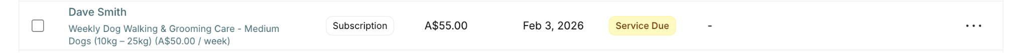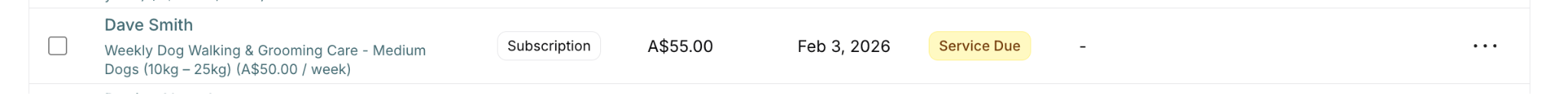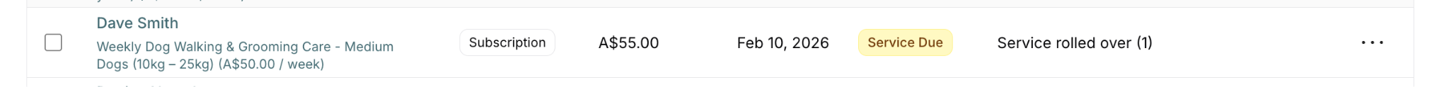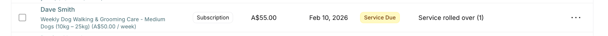 Service status: Stays Service Due or Overdue (doesn't cancel, doesn't complete)