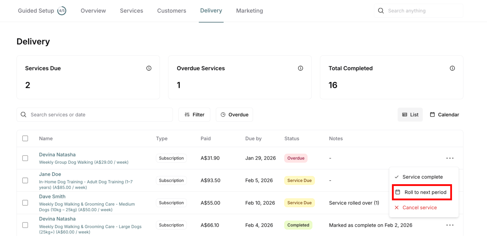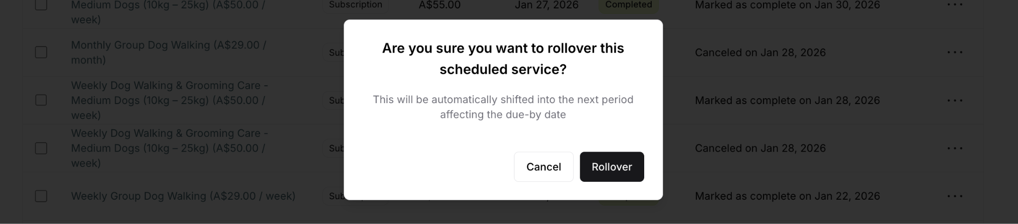 Rolling services over provides scheduling flexibility while maintaining your commitment to deliver services. Use it appropriately for temporary delays, communicate clearly with customers, and always follow through on the rescheduled service!