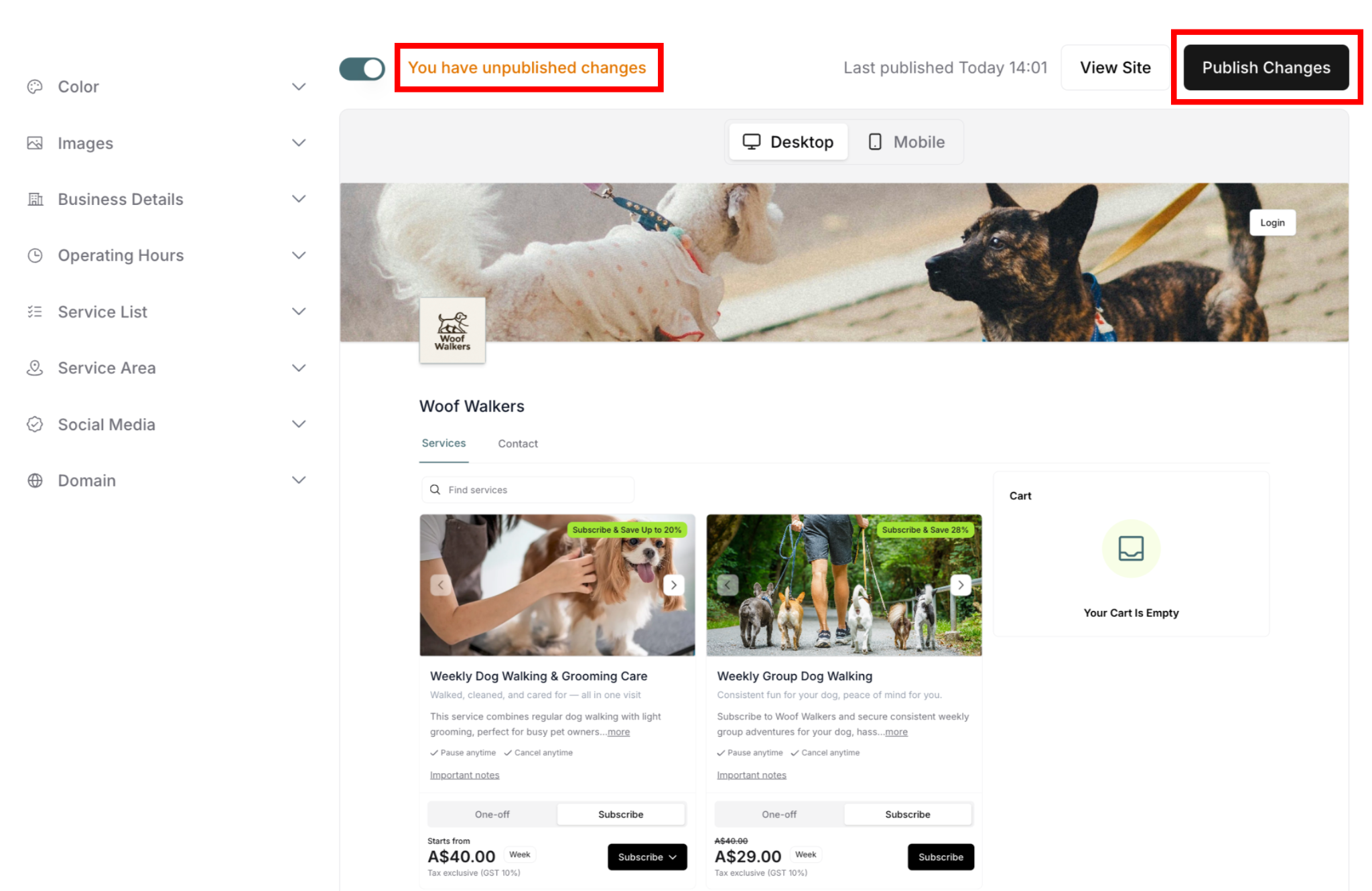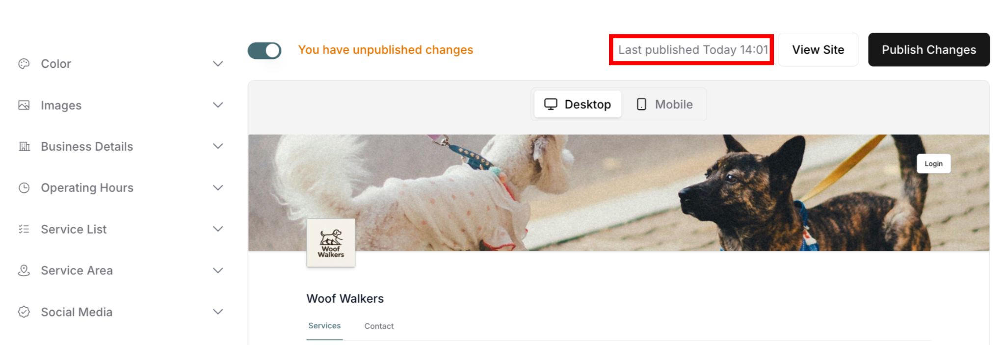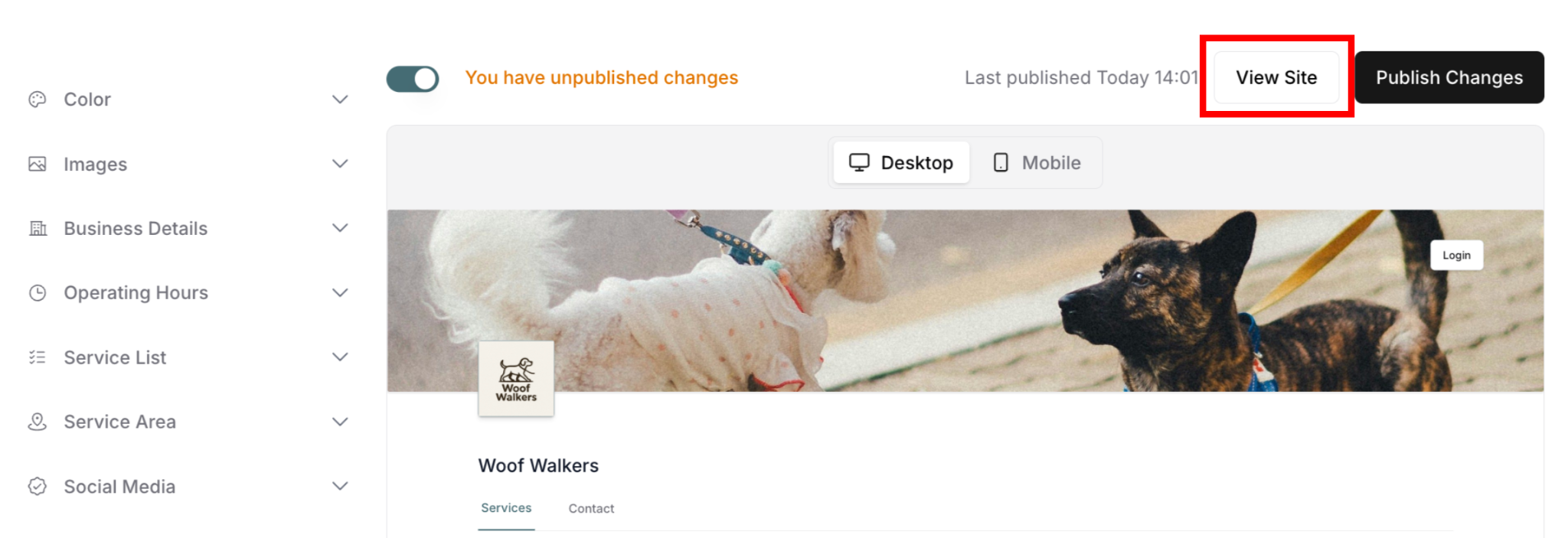 ✍️ TIP: Make changes in the left panel and watch them appear instantly in the preview. When satisfied, click "Publish Site" to make changes live.