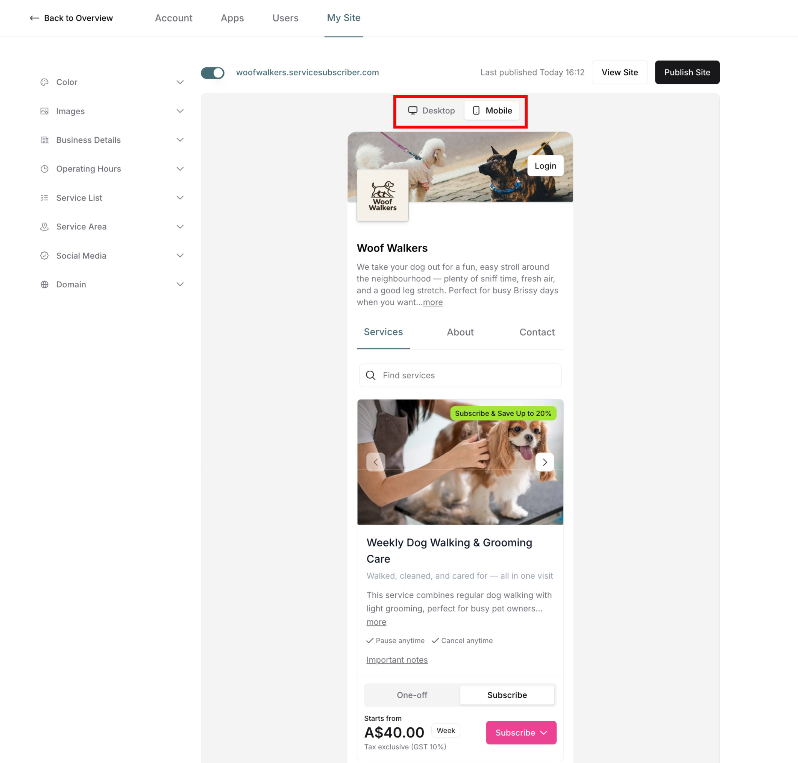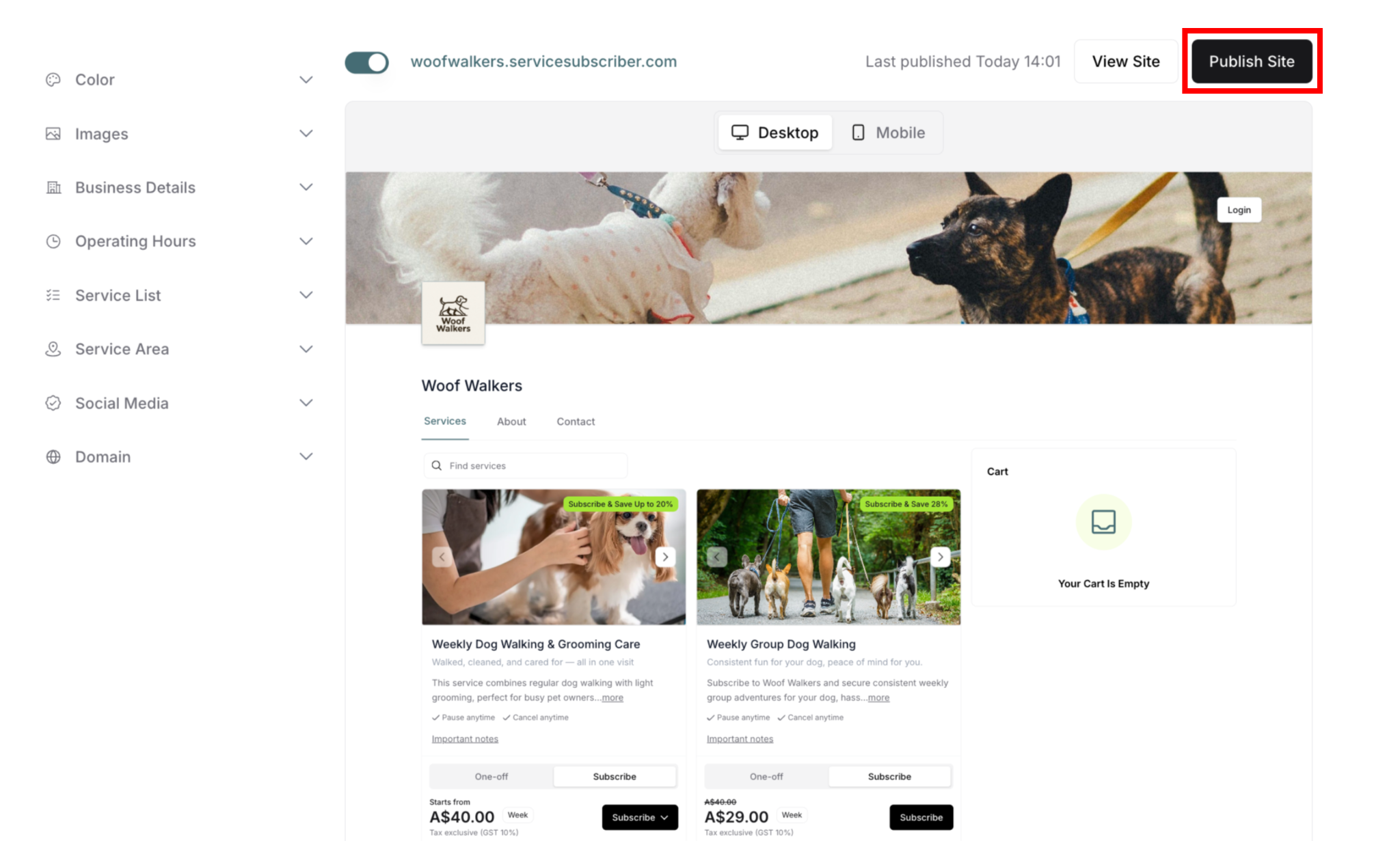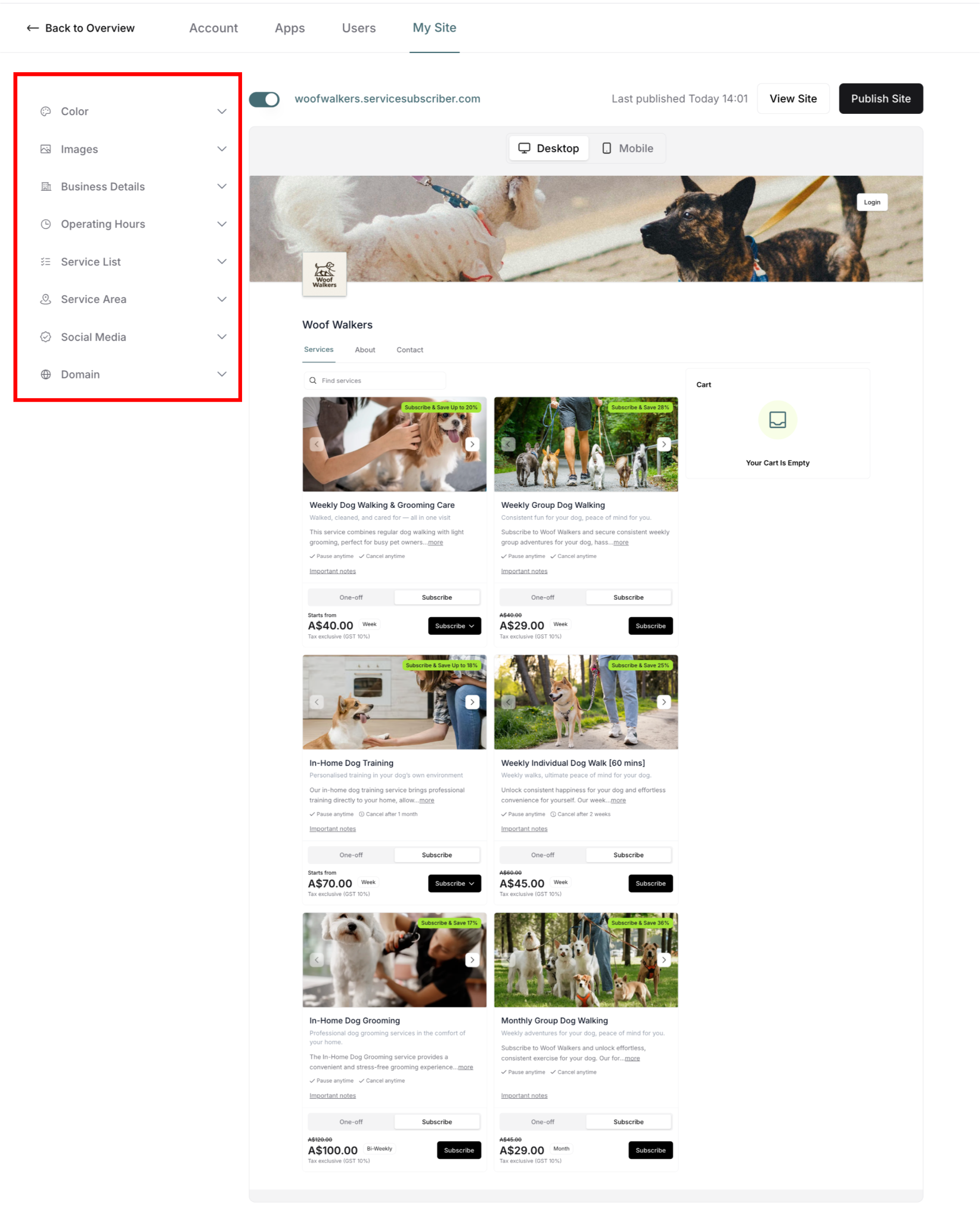 My Site Settings is your central hub for customizing and managing your subscription website. This is where you control everything from colors and branding to publishing your site live for customers.