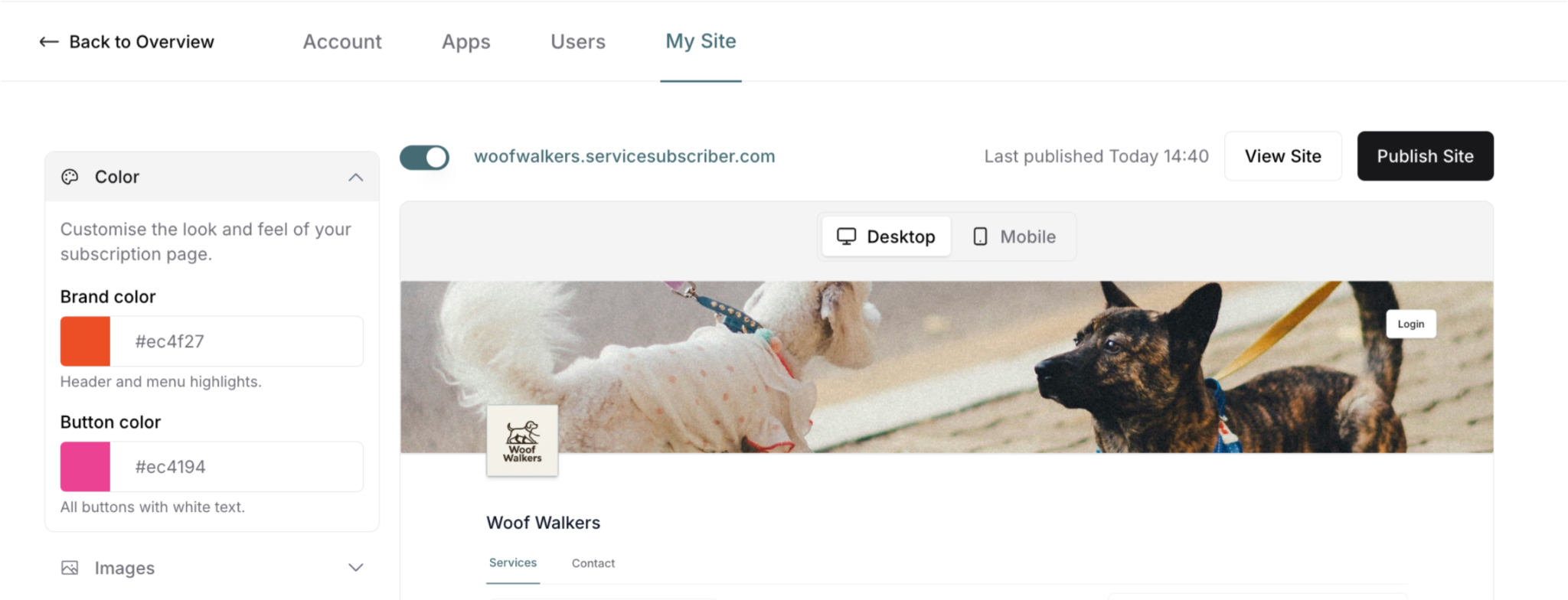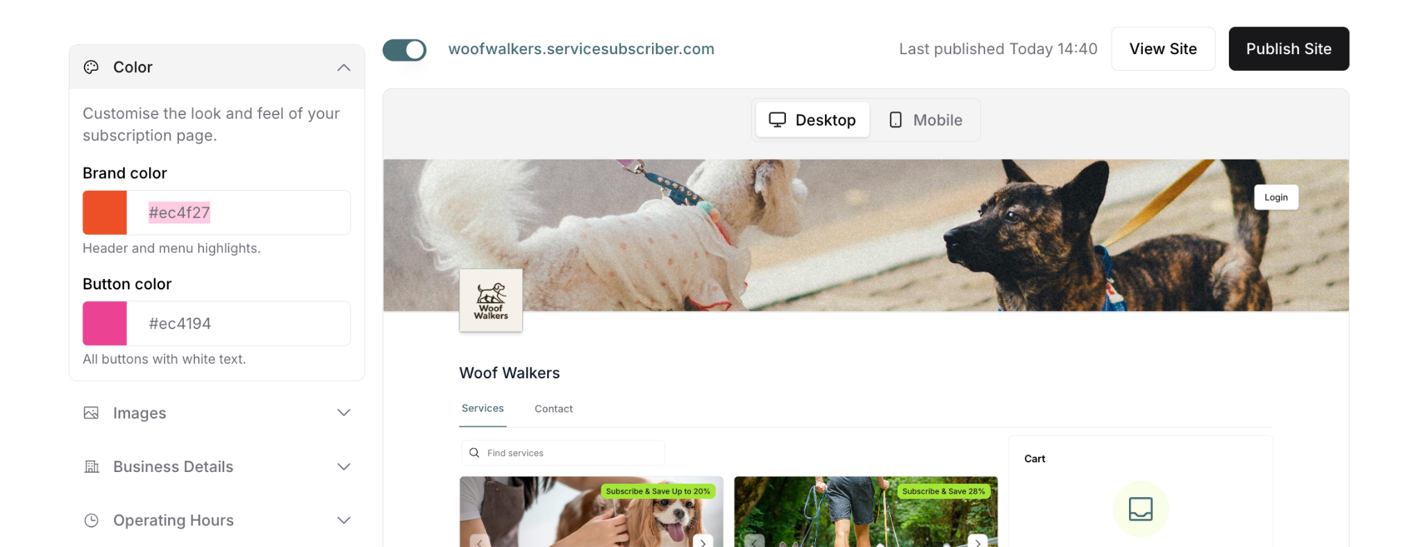 Your brand colors and images create the visual identity customers see on your subscription page. Consistent, professional branding builds trust and makes your business memorable.