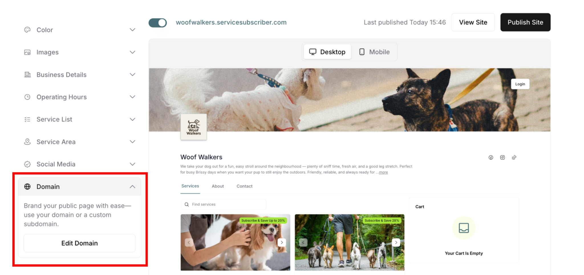 ✍️ TIP: Your subdomain is your site's identity. Choose it carefully, keep it professional, and update all your marketing materials after changing. Once you have a good subdomain, avoid changing it frequently to maintain consistent branding and prevent confusion.