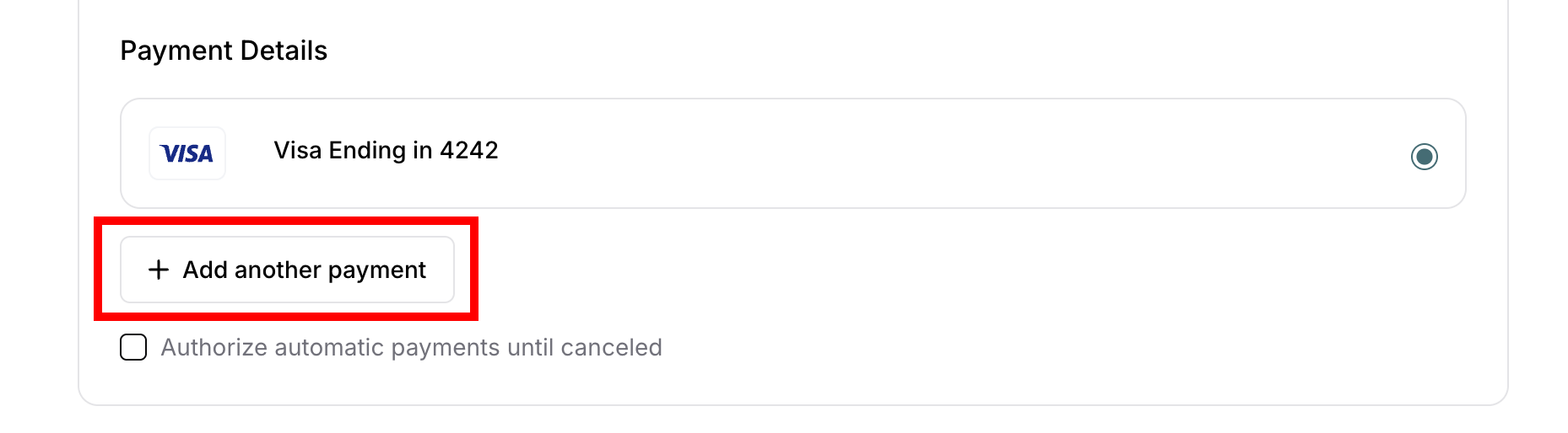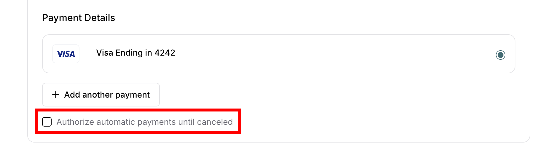 Verify payment method selected