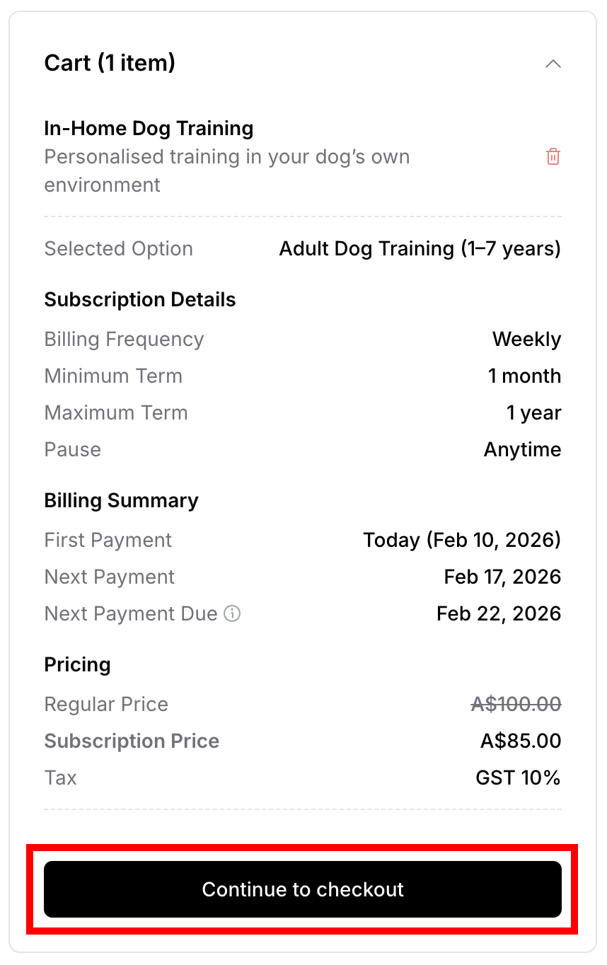 ✍️ TIP: Pause and cancel options are only available in the customer portal AFTER purchase is complete, not during checkout. These features are covered in detail in separate articles