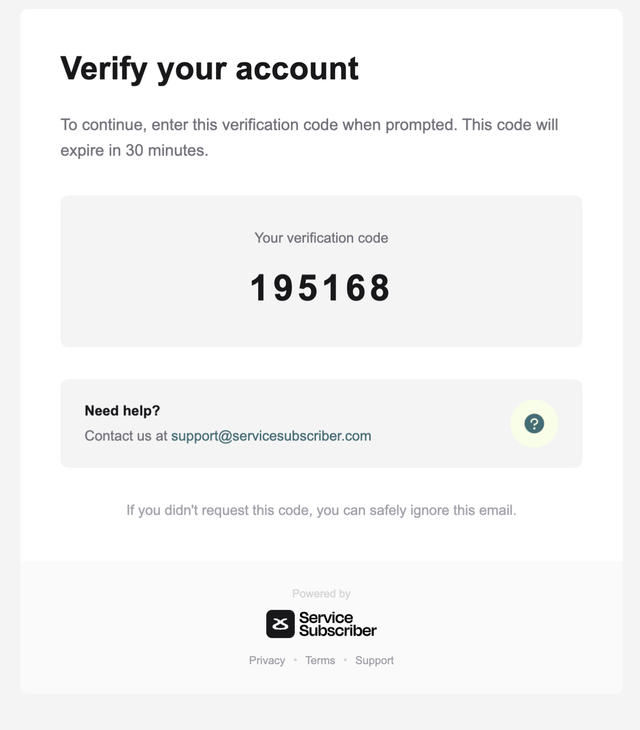Service Subscriber sends code to email