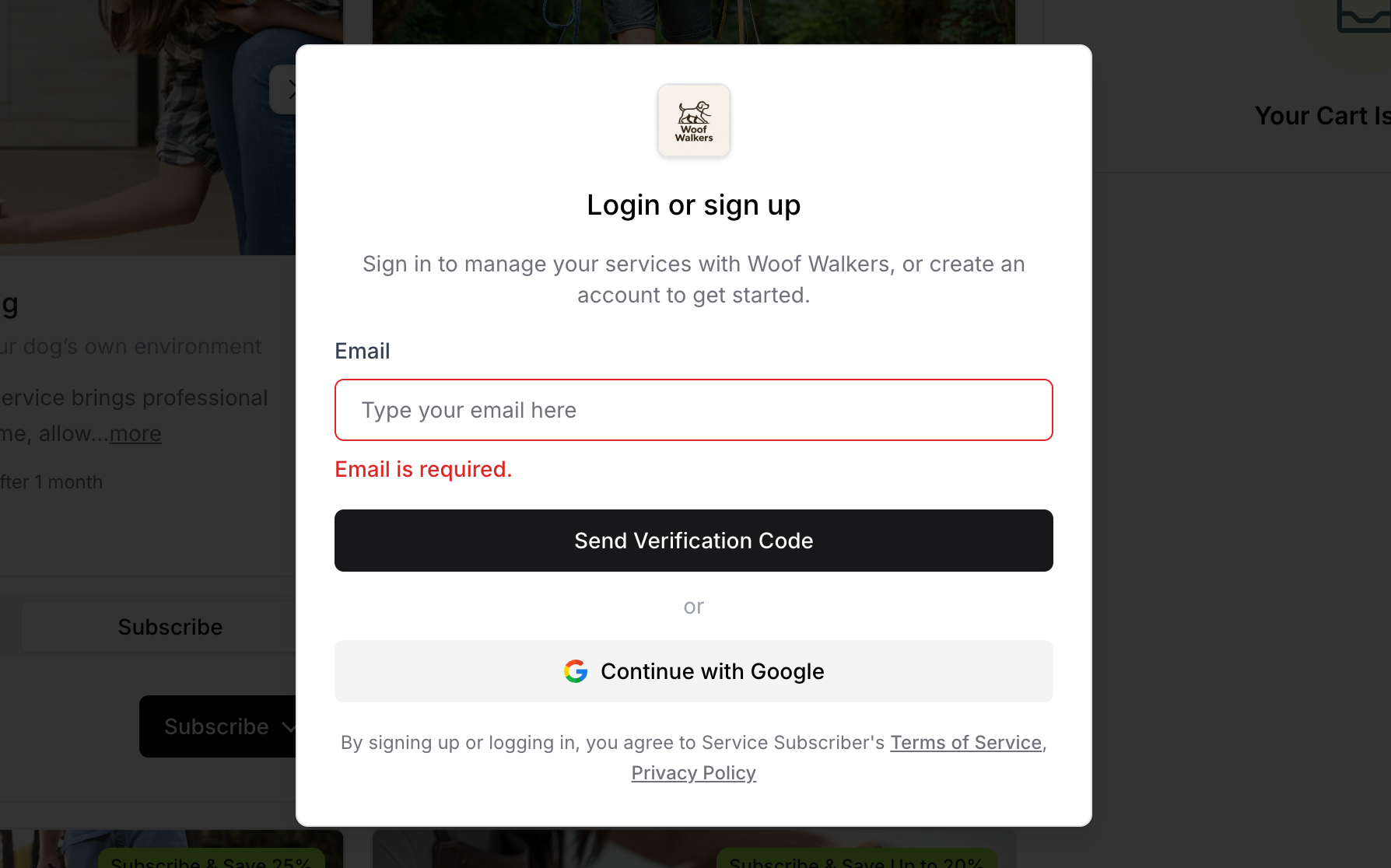 ✍️ TIP: The signup process requires login BEFORE adding to cart, ensuring secure account creation. After checkout, customers access a separate customer portal to manage their services, including pause and cancel options. The portal is covered in detail in separate articles.